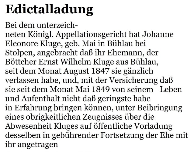 Leider ist nicht aktenkundig, ob Frau Eleonore Mai ihren Mann hat wieder in die Arme schließen dürfen!